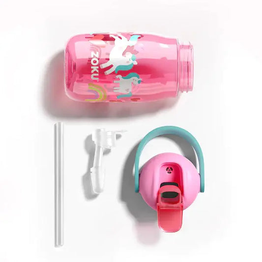 Bouteille Flip Straw avec Paille - Licorne Rose 400ml